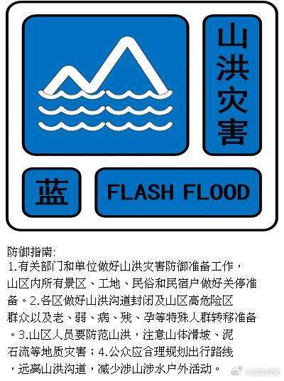 北京继续向山洪发出蓝色警告。请远离山洪流和?