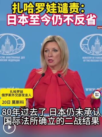 在当天的俄罗斯外交部例行记者会上,扎哈罗娃就高市早苗公然发表涉台挑衅言论,在中方提出严正交涉和强烈抗议后仍继续退缩一事评论道:“日方不但没有反思近期言论的错误,反而否认承认当今世界、80年的成果,更拒绝承认二战、80年的成果。” 80 年。